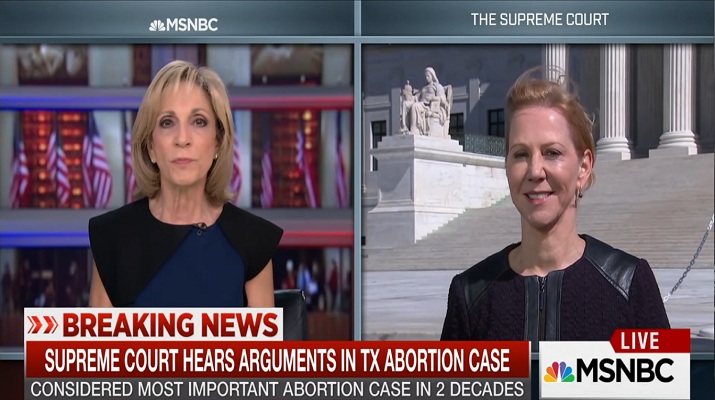 MSNBC's Andrea Mitchell hears from Nancy Northup, president of the Center for Reproductive Rights, about oral arguments before the Supreme Court in a case challenging provisions of Texas' omnibus antiabortion-rights law (HB 2).